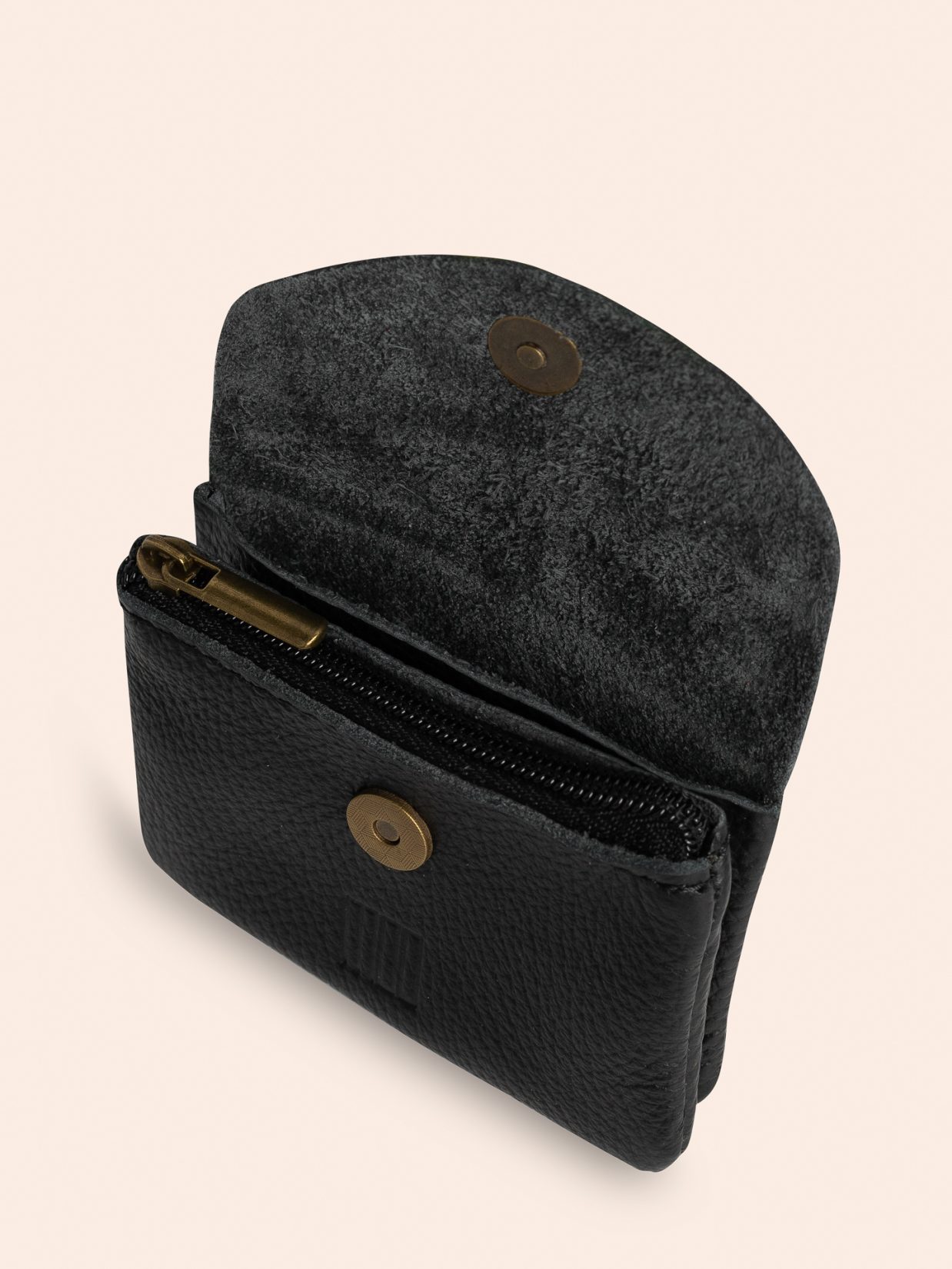 Portemone Cow er laget av preget kalveskinn og er en nett og praktisk liten lommebok (pouch) til kort og kvitteringer, mynter eller f.eks. øredobber. Den har et rom med glidelås i tillegg til en lomme til kort (du får plass til syv). Den lukkes i front med en magnet.